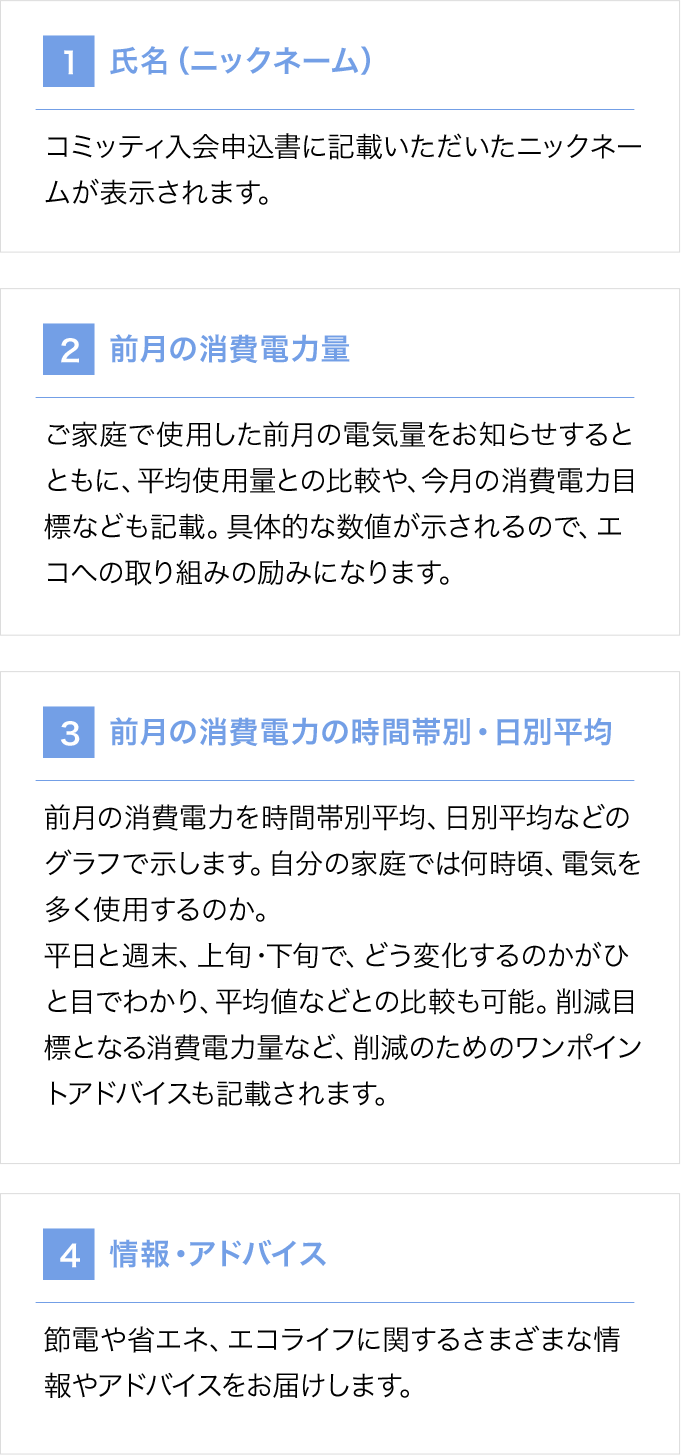 電気の使用状況や省エネのアドバイスなど情報が満載。